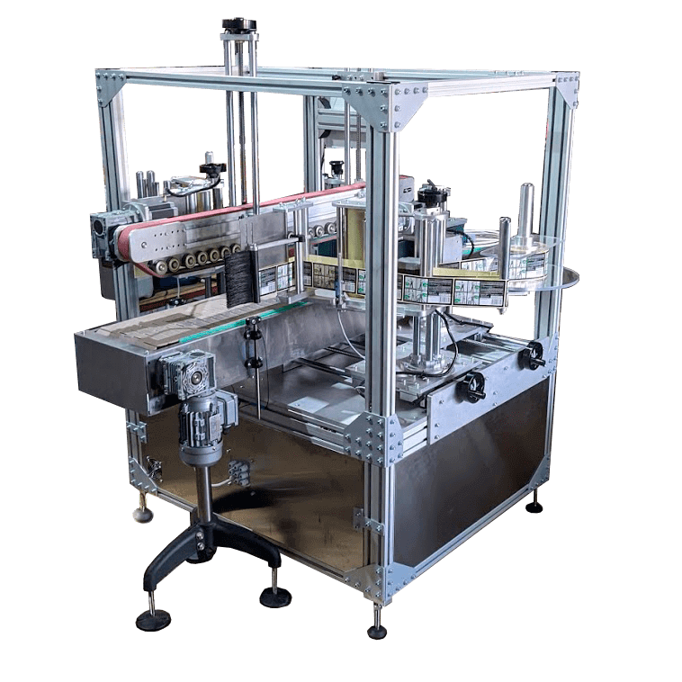 Автоматическая этикетировочная машина для нанесения самоклеющейся этикетки на плоскую, цилиндрическую тару или тару со сложной геометрией. Уменьшенные габариты, складная рама оснащенная колесами с блокировкой. Производительность до 3000 шт./час.
