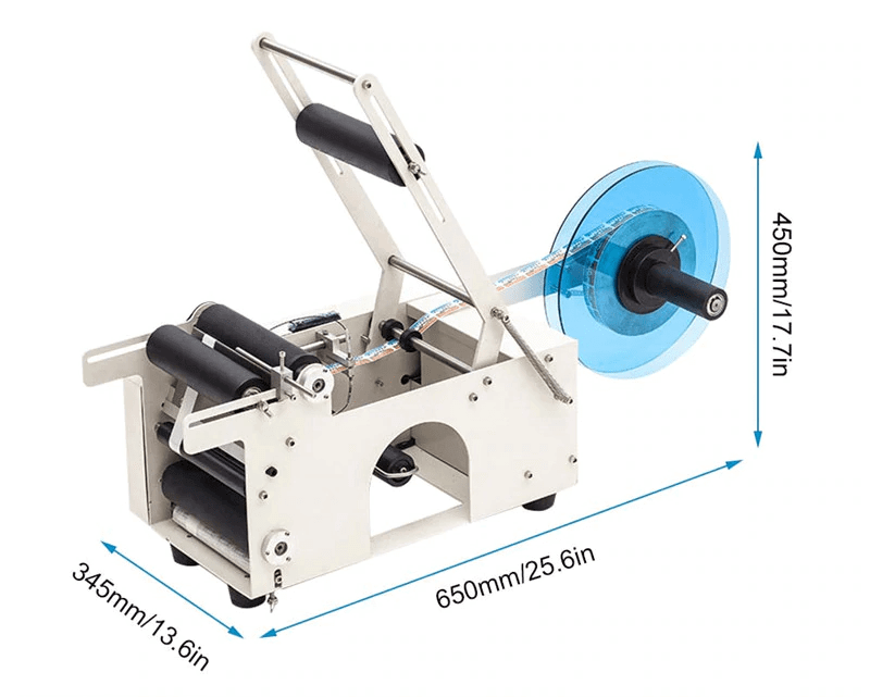 Полуавтоматическая этикетировочная машина МТ-50 для нанесения этикеток на цилиндрическую продукцию, бутылки, тубусы, шприцы, парфюмерную продукцию. За точное позиционирование этикетки отвечает датчик Autonics BF3RX. Вылет этикетки регулируется либо электронно, либо механически. Производительность до 2000 шт./час!